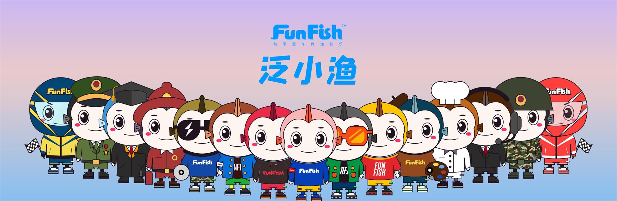 IP形象结合鱼与人的特征做拟人化处理。FunFish品牌对此卡通形象拥有外观设计专利权